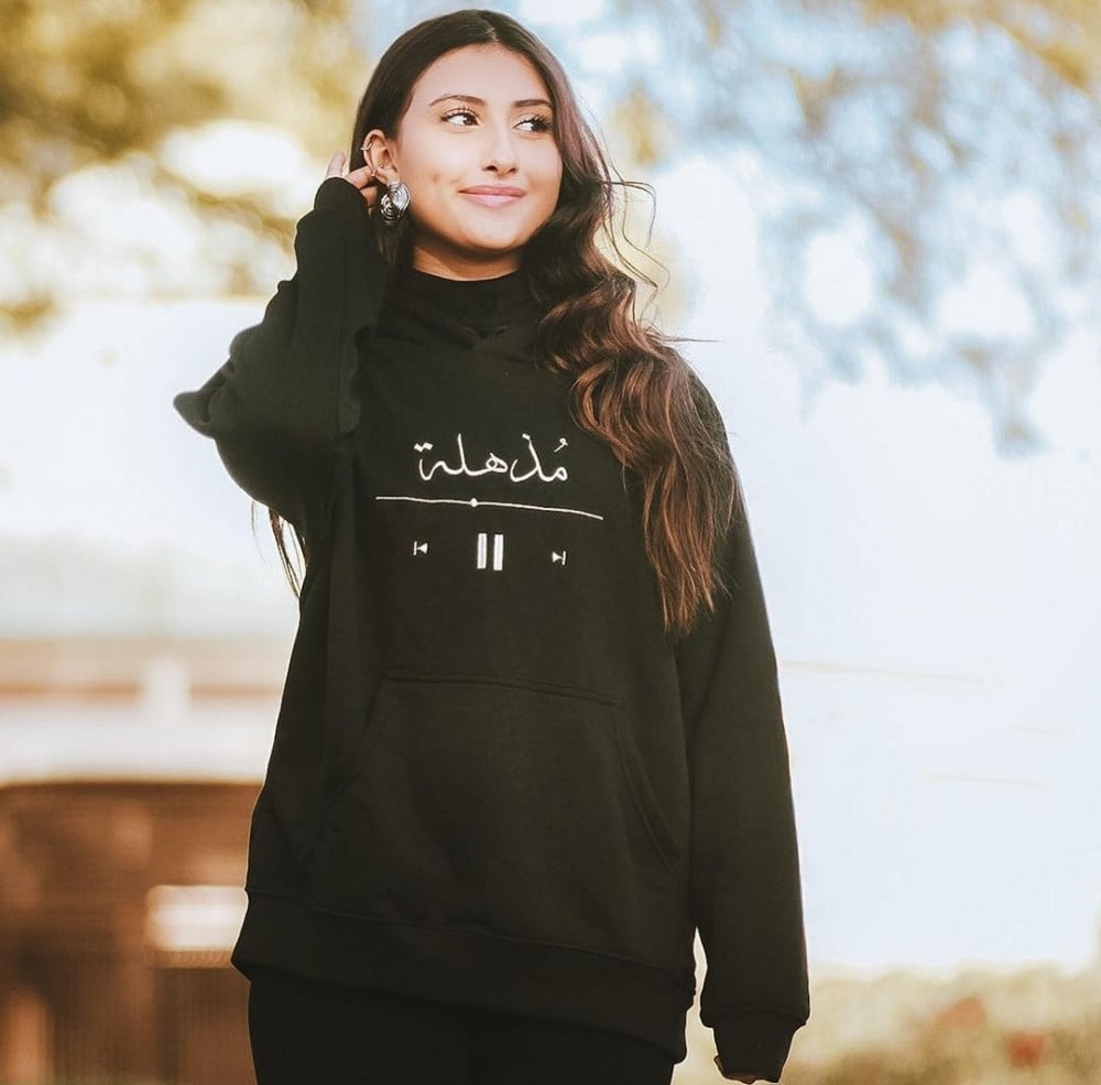 ياقة هودي واكمام طويلة منفوخة .