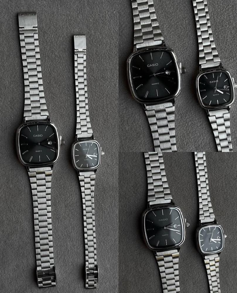 كاسيو LTP كبلز اسود - فضيساعة رجالية + ساعة نسائيةذات تصميم مميز وعصريمقاومة للماء بشكل سطحيتحكم بمقاس السير بشكل سلستوصلك في باكج مرتب ومناسب للإهداء