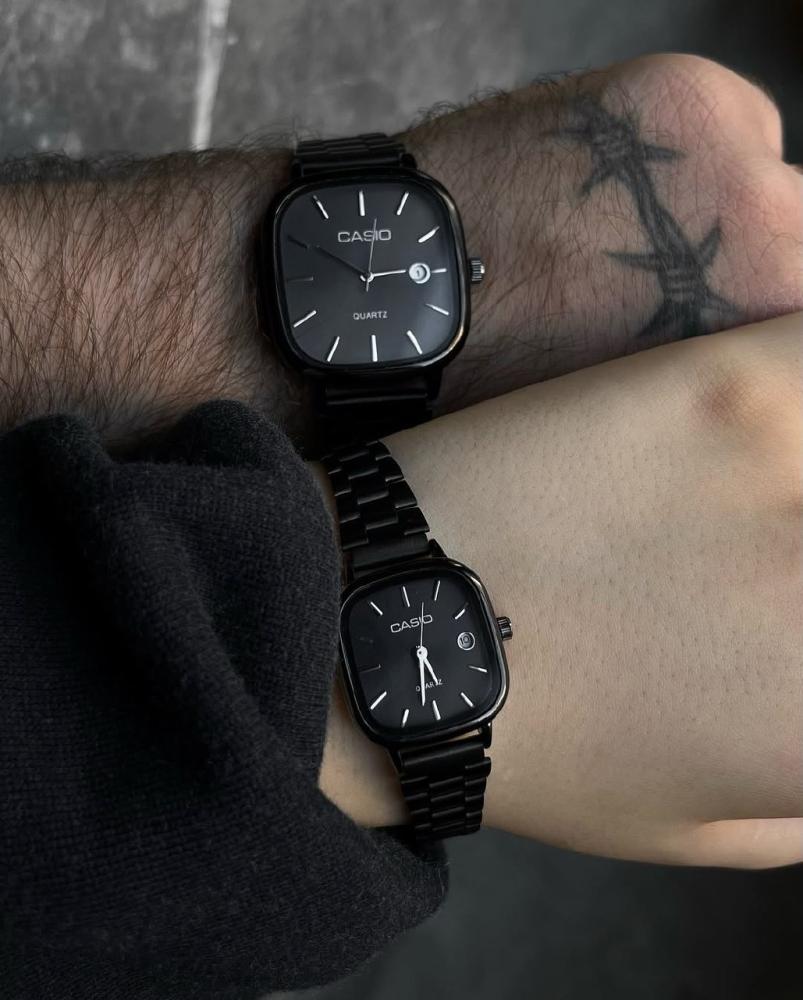 كاسيو LTP كبلز اسود ساعة رجالية + ساعة نسائيةذات تصميم مميز وعصريمقاومة للماء بشكل سطحيتحكم بمقاس السير بشكل سلستوصلك في باكج مرتب ومناسب للإهداء